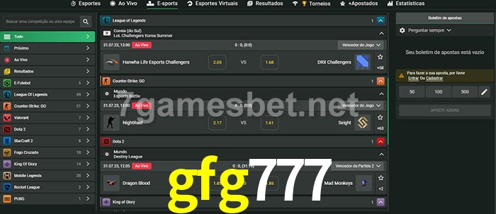 O gfg777 oferece uma grande seleção de opções de apostas em e-sports com probabilidades competitivas